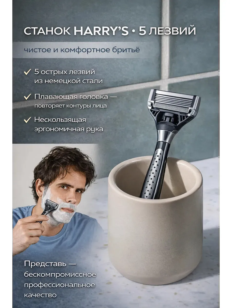 Все станки Harry’s разрабатываются в США и производятся в Германии. Они проходят многочисленную систему проверки качества и соответствуют самым строгим требованиям надежности и безопасности.